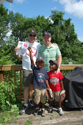 Particularly special was seeing Jacoby Elsbury (the boys current favorite player) steal second, and then in the same play, on an error, steal 3rd. Then seeing Big Papi too – what a treat! Sadly, though the Sox were up 5 to nothing in the 4th, they crashed and burned and ended 11-6. But, the boys did not care one iota – and have been “playing Red Sox” here at home every second since then. The latest thing is that they say a Phillies player catch a pop-fly against the wall – so the couch in our living room is “the wall” and they “catch the ball” and then flip over the wall to indicate how big a catch it really is. Yahoo!